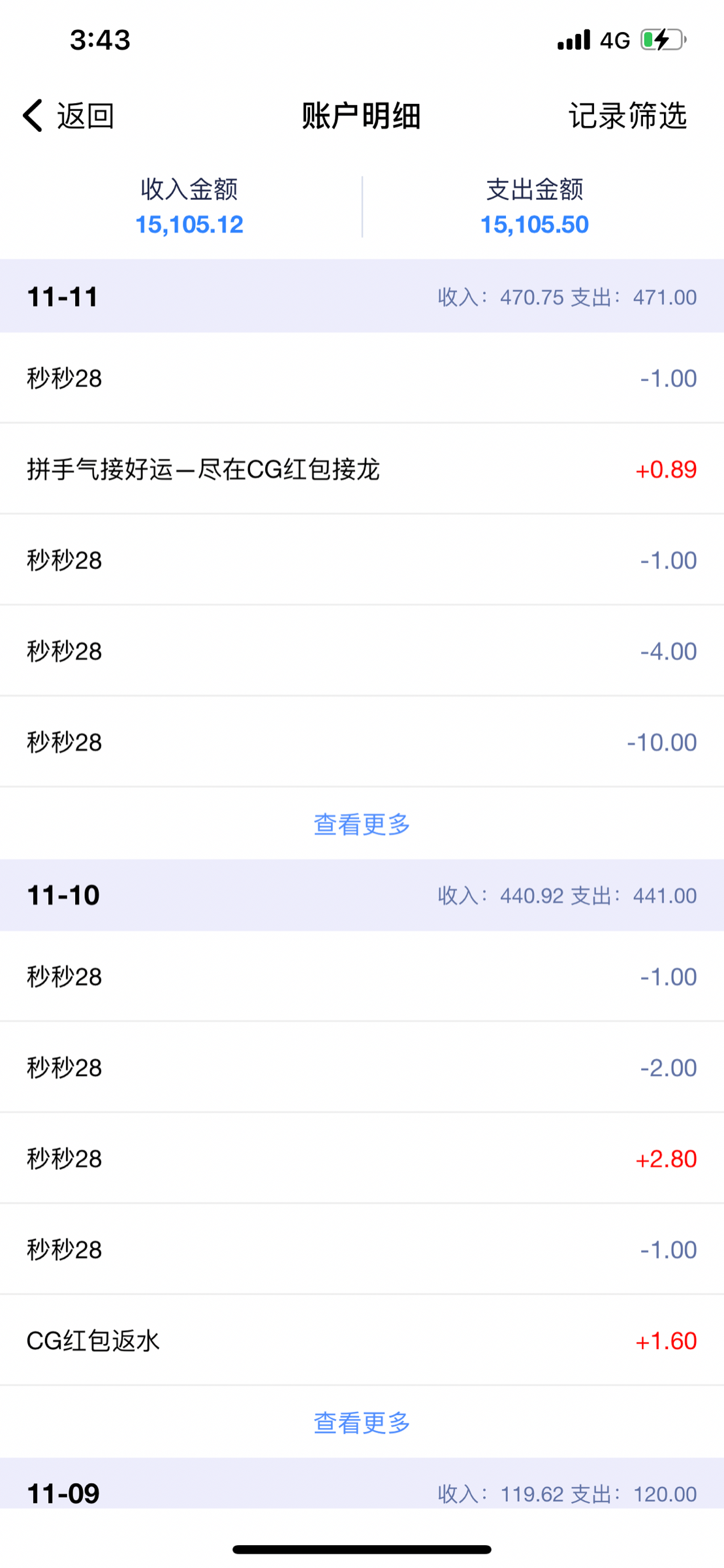 总共充不少了这个月还没开工资呢5号开