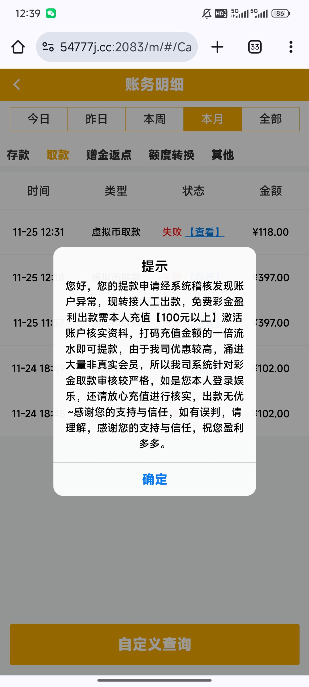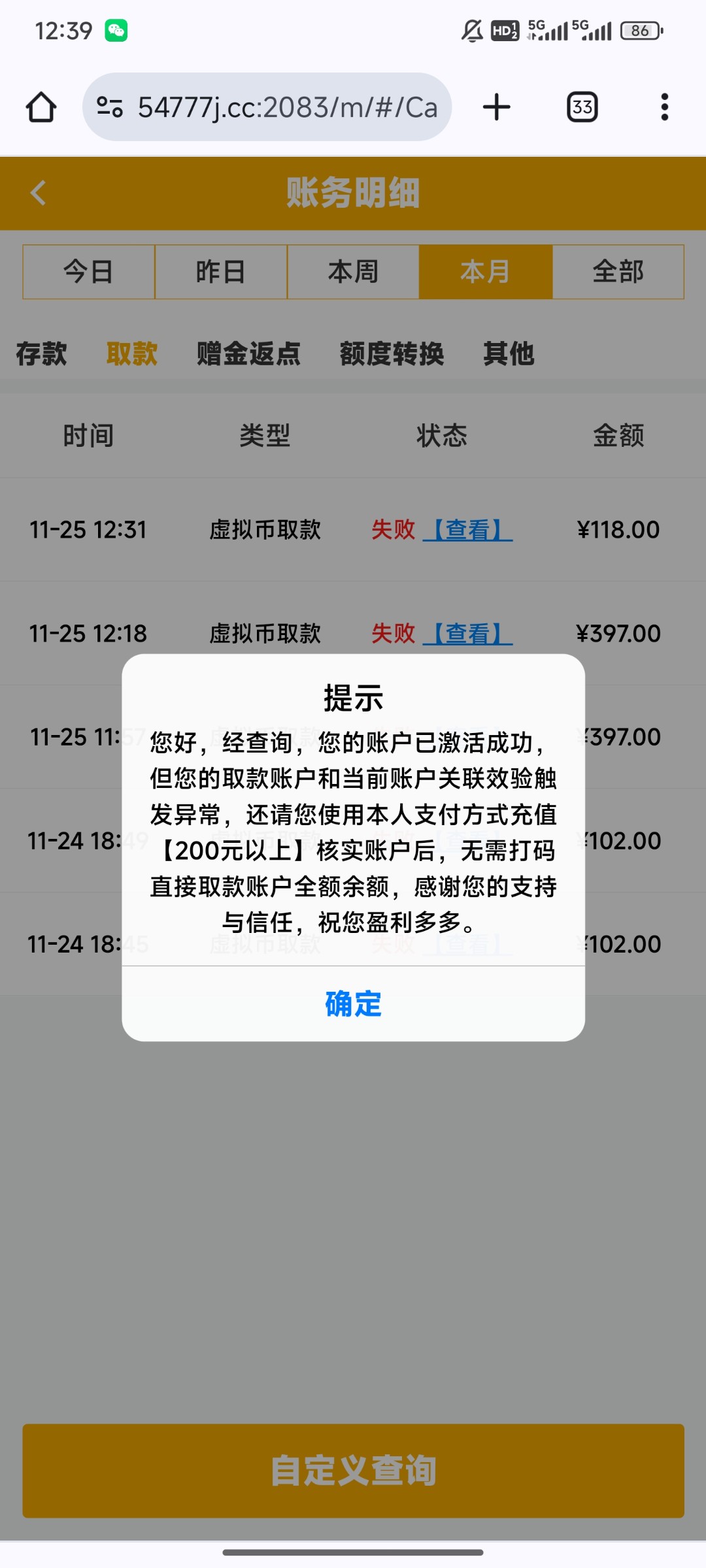 被黑金额: