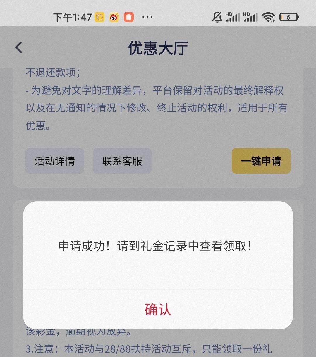 绑定手机号银行卡后去优惠大厅一键申请