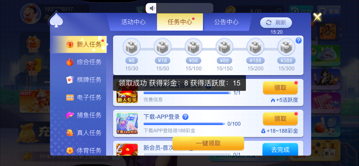 注册完善信息任务自助领取