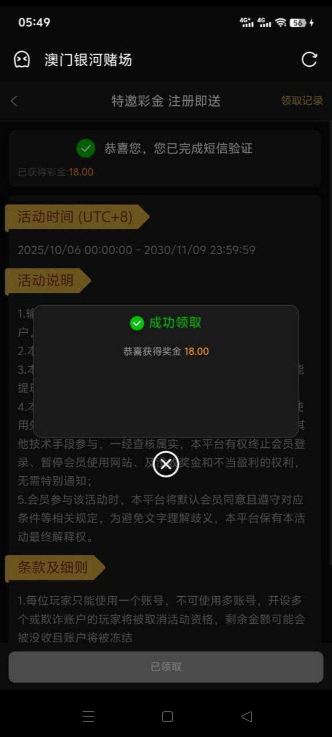 【澳门银河】注册即送18彩金