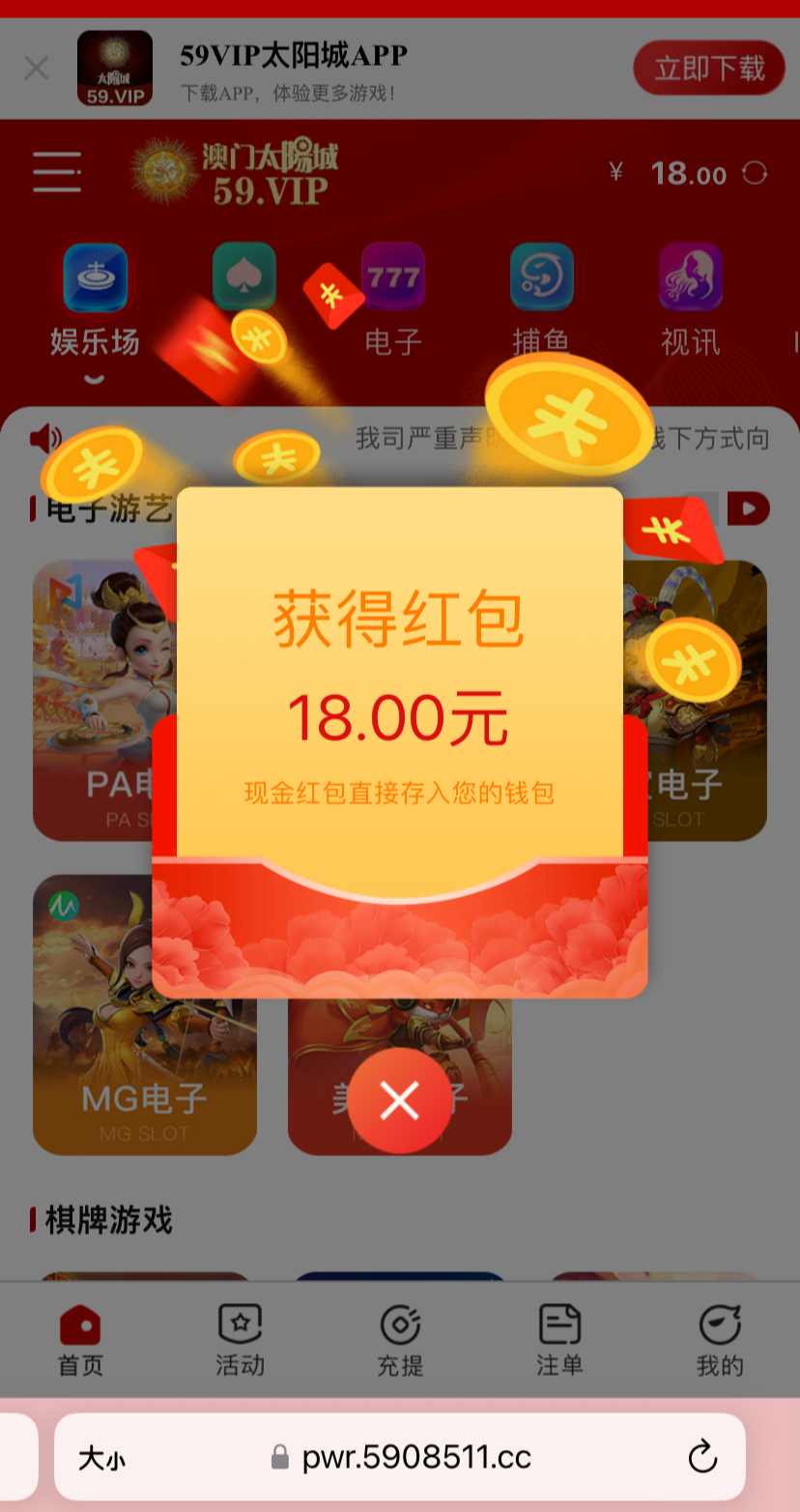 注册不用绑卡,等四五天登陆自动弹18红包,不限制游戏,一百提