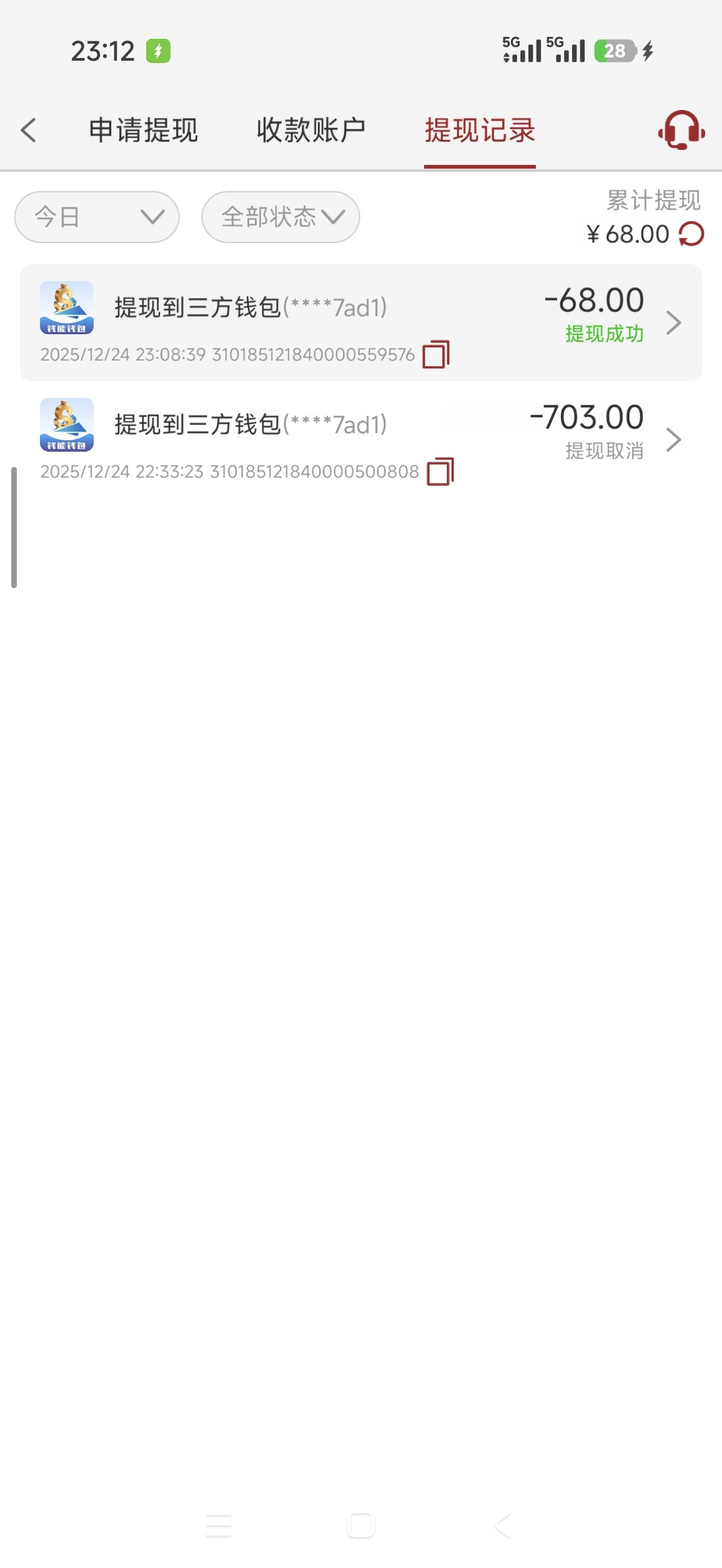 发短信申请27注册彩金没申请到,就首存个68+68赢了700提现,最后只退本。真的有点好笑,以为能吃肉了,结果毛都没有