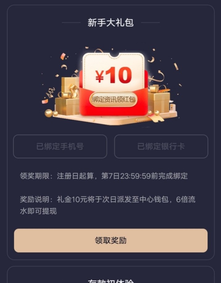 新用户注册 绑手机号/银行卡