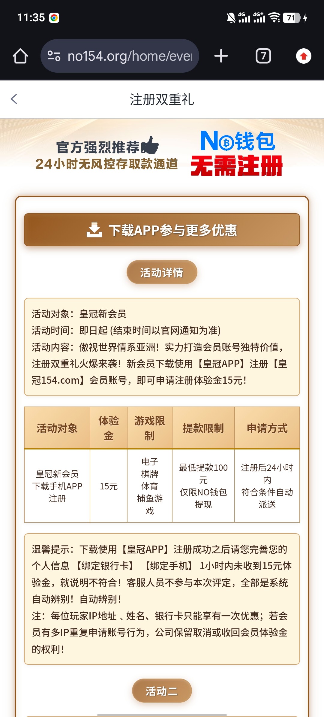 下载app 注册账号 完善个人信息符合要求 自动派送 彩金盈利满100 指定No钱包出款
