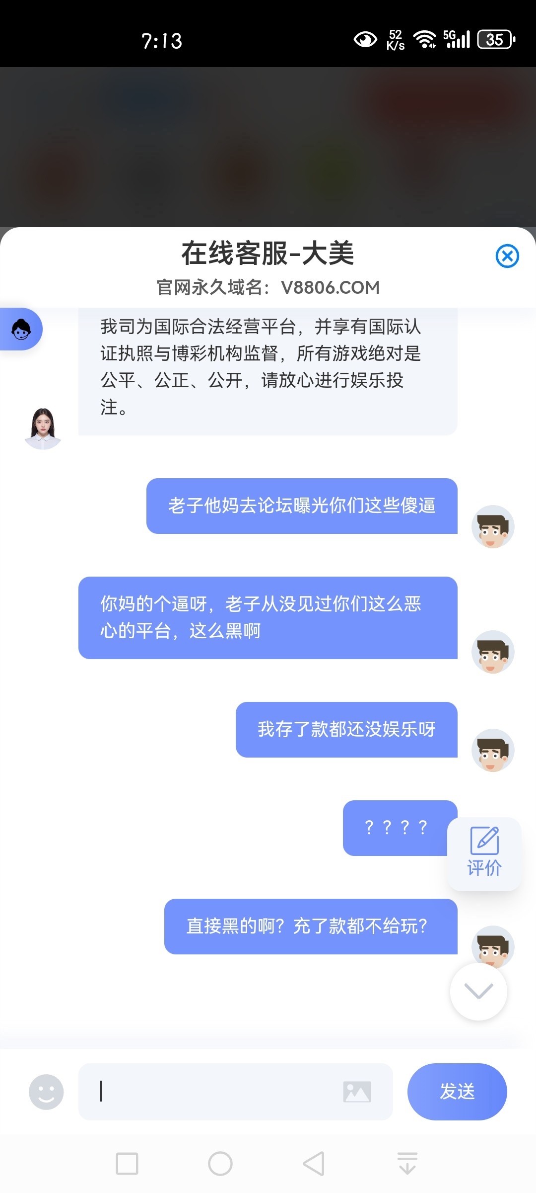 我他妈第1次见到这么牛逼的黑台,充了377块钱申请这个50%的首充,都还没开始娱乐,就直接封号了 V88体育 真你妈牛逼,给大家看一眼,这个傻逼黑台 我真的服了