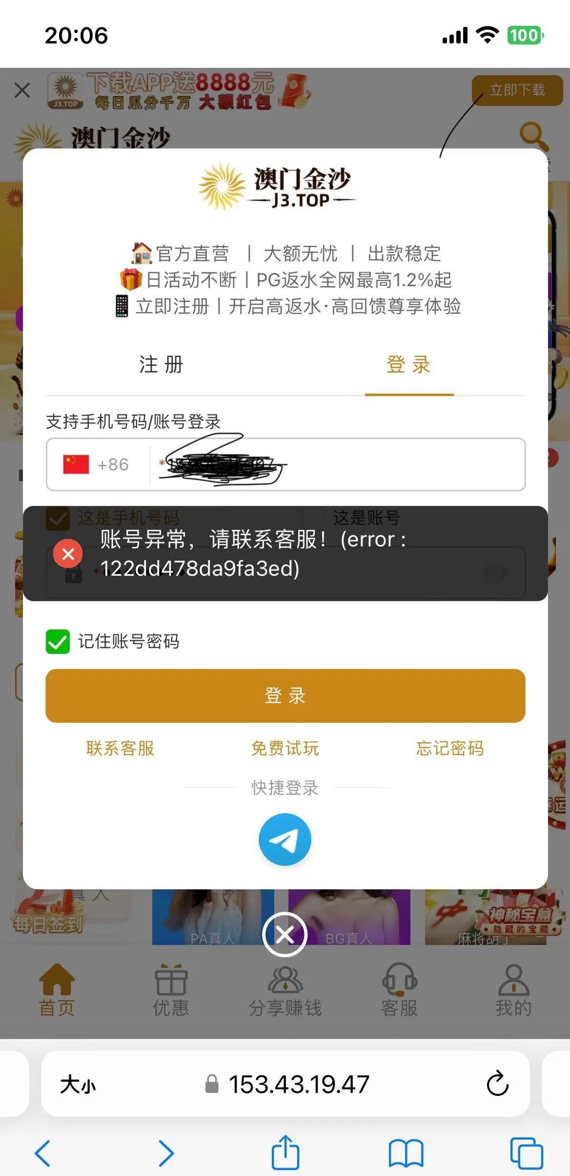 打电话来100+120,流水打够了正常投注,盈利了打到713提现,第一次提u拒绝,第二次提钱包账号异常