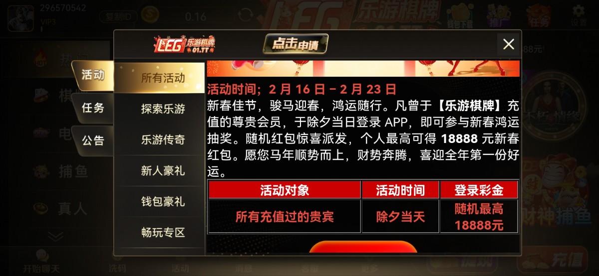 充值过的除夕登录免费领彩金