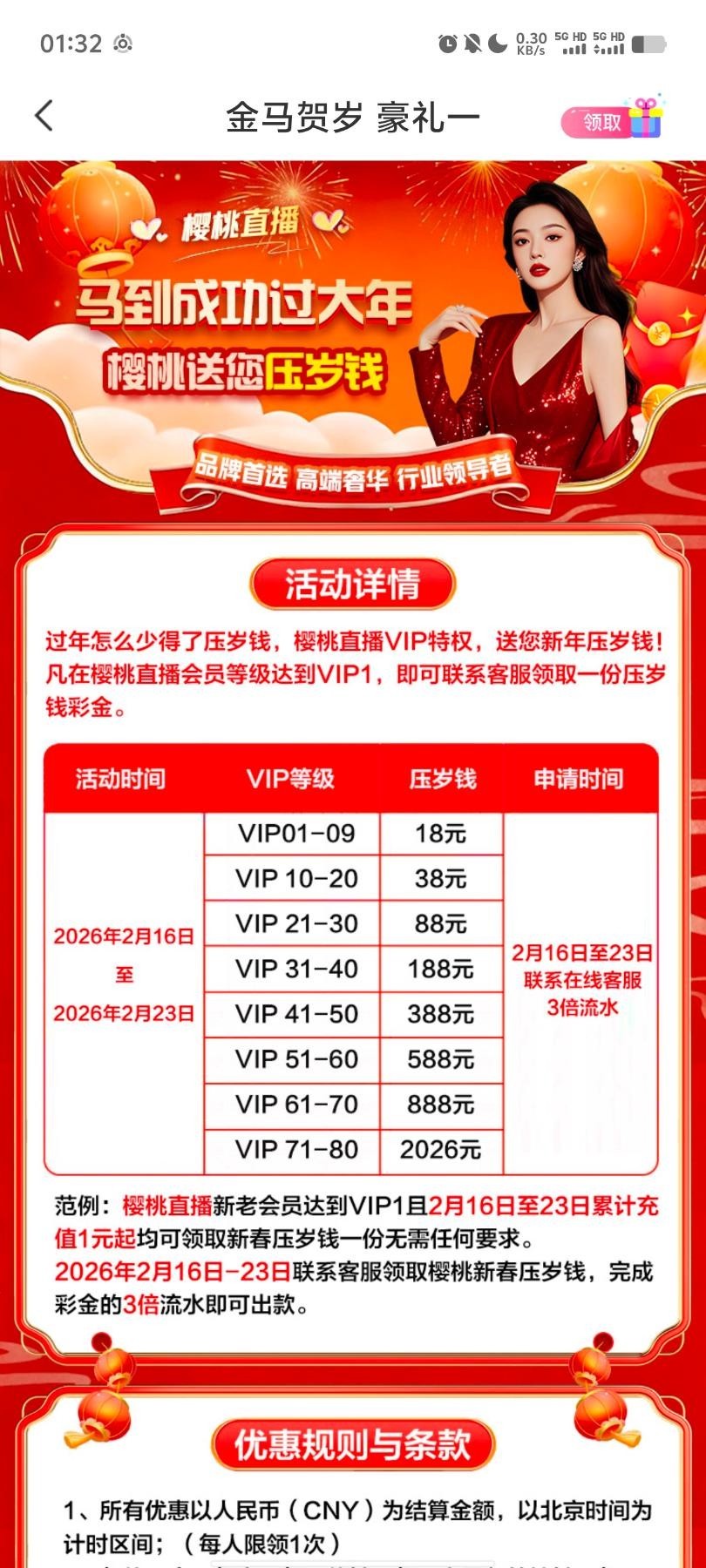 【樱桃直播】马到成功压岁钱