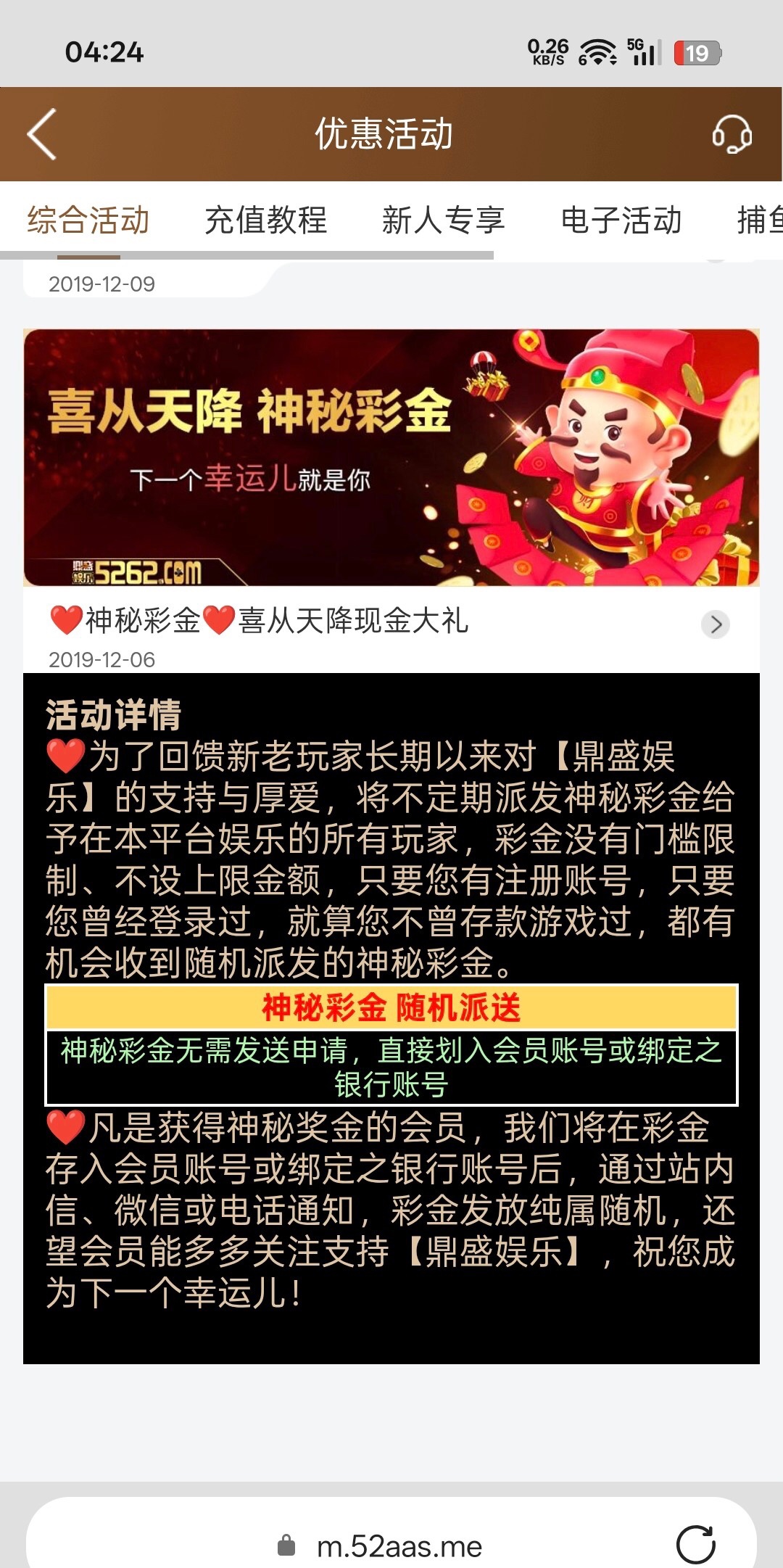 玩过的上去看看没有没彩金,我刚进去领了5元拉麻将几手进去提了100多,有的话白嫖去看看,今天元宵节部分人有,都上号看看吧,有就撸没有就无视,别骂链接52662.com