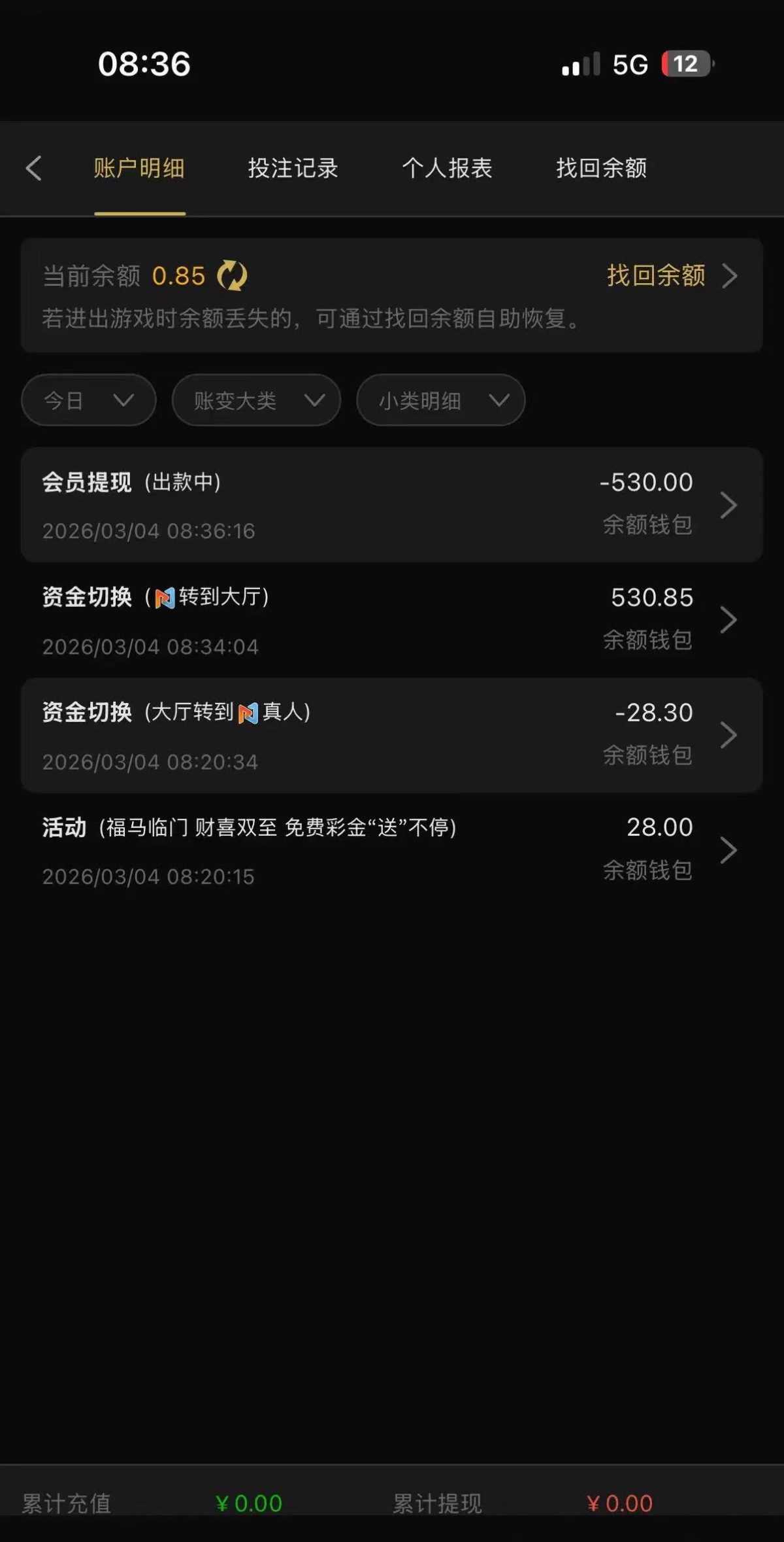 出款情况:自测(