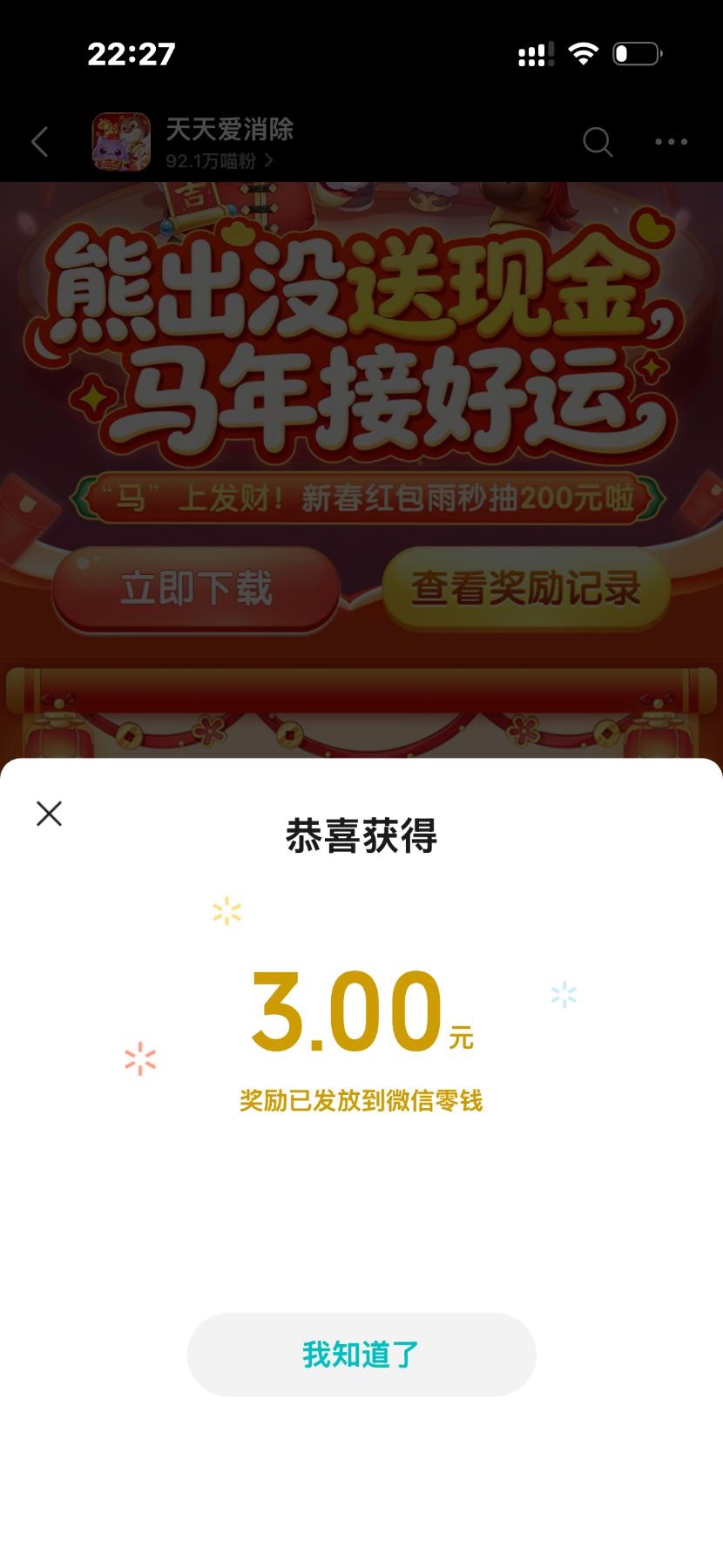 天天爱消除必得3元红包