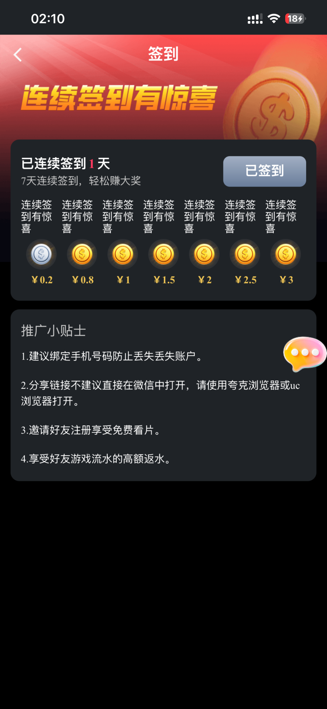 下载绑定手机随机秒 还有7天签到加起来有11