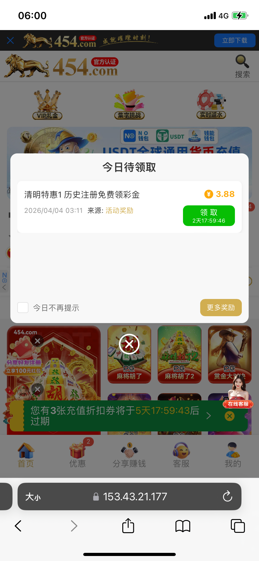 没充过,上来就有, 454.com