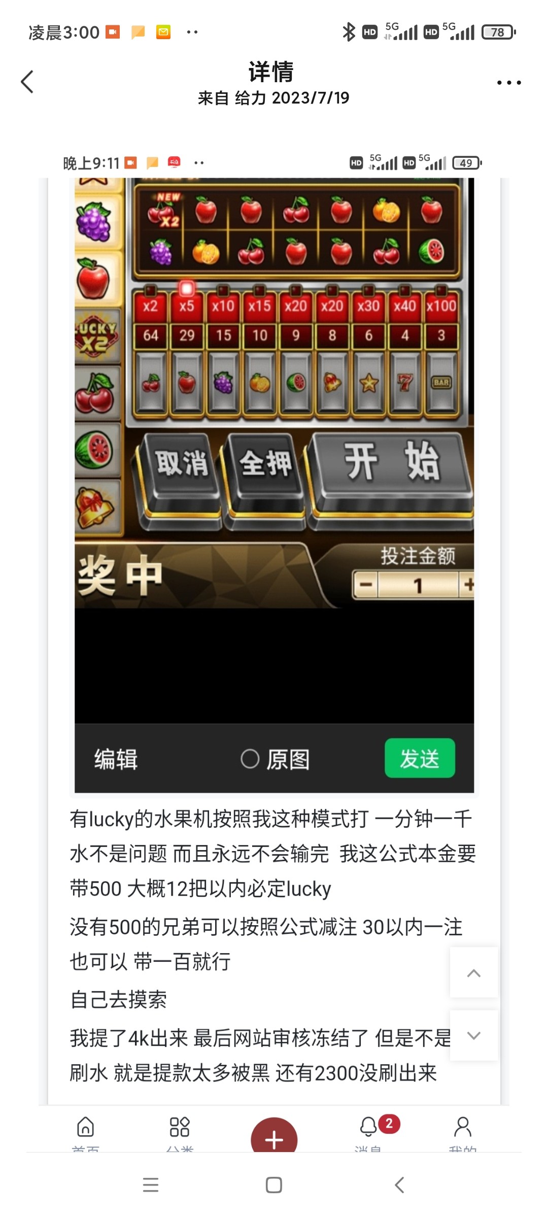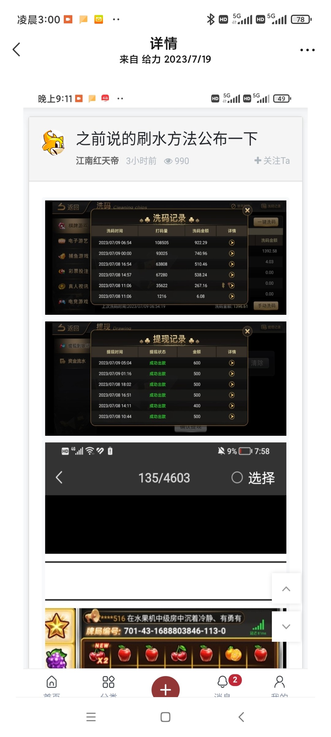 1300进去亏了450反水50还亏400,之前自己拿免费试玩刷来是jdb的小什么,之前帖子下面也有老哥亏1000,500的都说过天下底没有人免费带你挣钱,再说那个傻逼一个礼拜的图是说挣钱给黑了号,为什么他不再去找平台刷,偏偏去发帖告诉你。