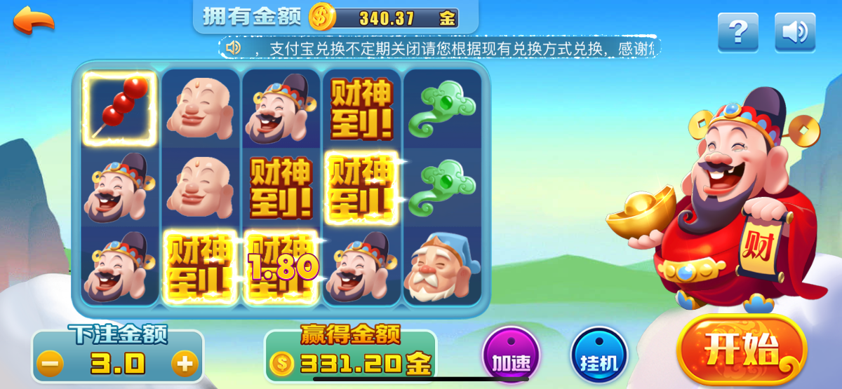 600块进去,刚开始0.4到0.8,到2再到4块,一共1500转以上没来胡,金莎990