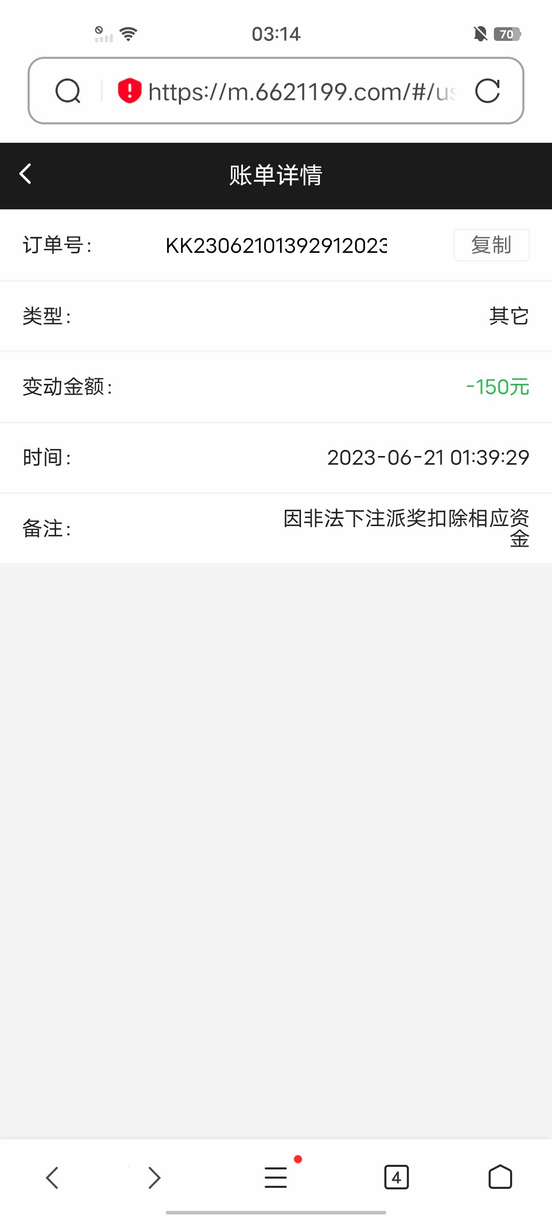 说违规下注,从上界世界杯开始染上足球,玩了这么久第一次碰到这情况?啥规则的理由我也是第一听说,也不知道这笔款还有没有希望!有遇到和我一样的老哥吗