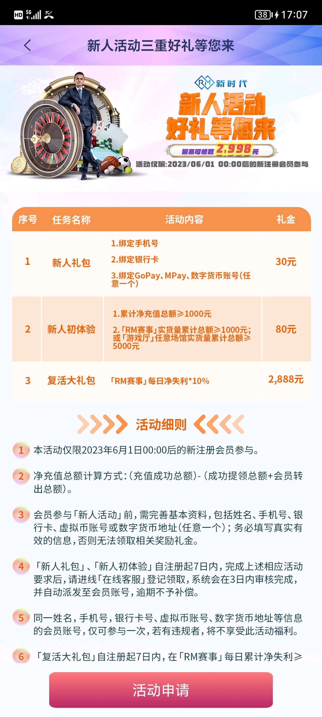 注册,一定要记住账号,然后下载APP,去绑定银行卡手机号钱包,联系客服申请新人礼包