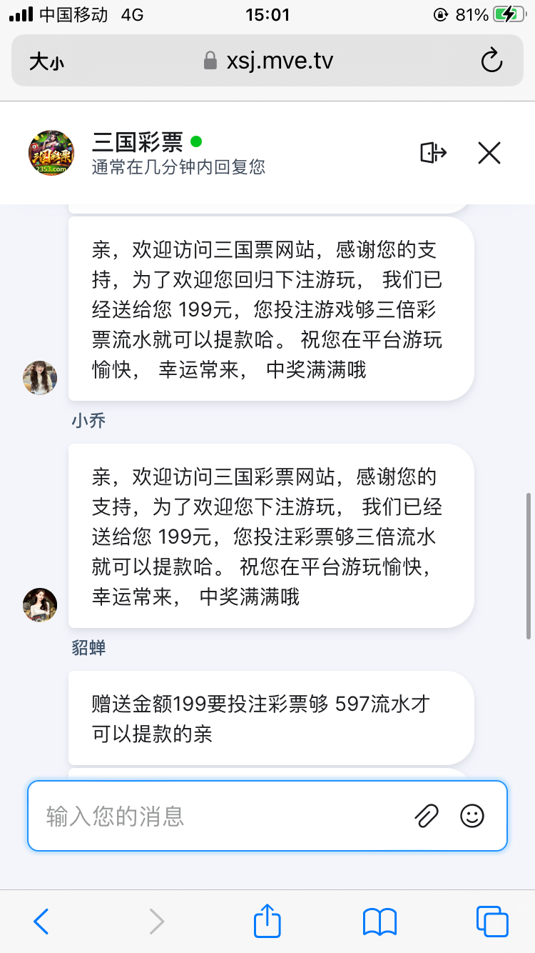 一个东南亚口音的电话直接打给我叫我注册送199,三倍流水,报网址!也不啰嗦就挂机了。我也没当回事反正0撸出不出无所谓,谁知出了。好久没充过钱,也不可能充值,感觉拿的有点理亏,给他发个广告算了,我也不会说网址。台名就是三国彩票,下次哪个兄弟接到电话就安心玩就可以了。