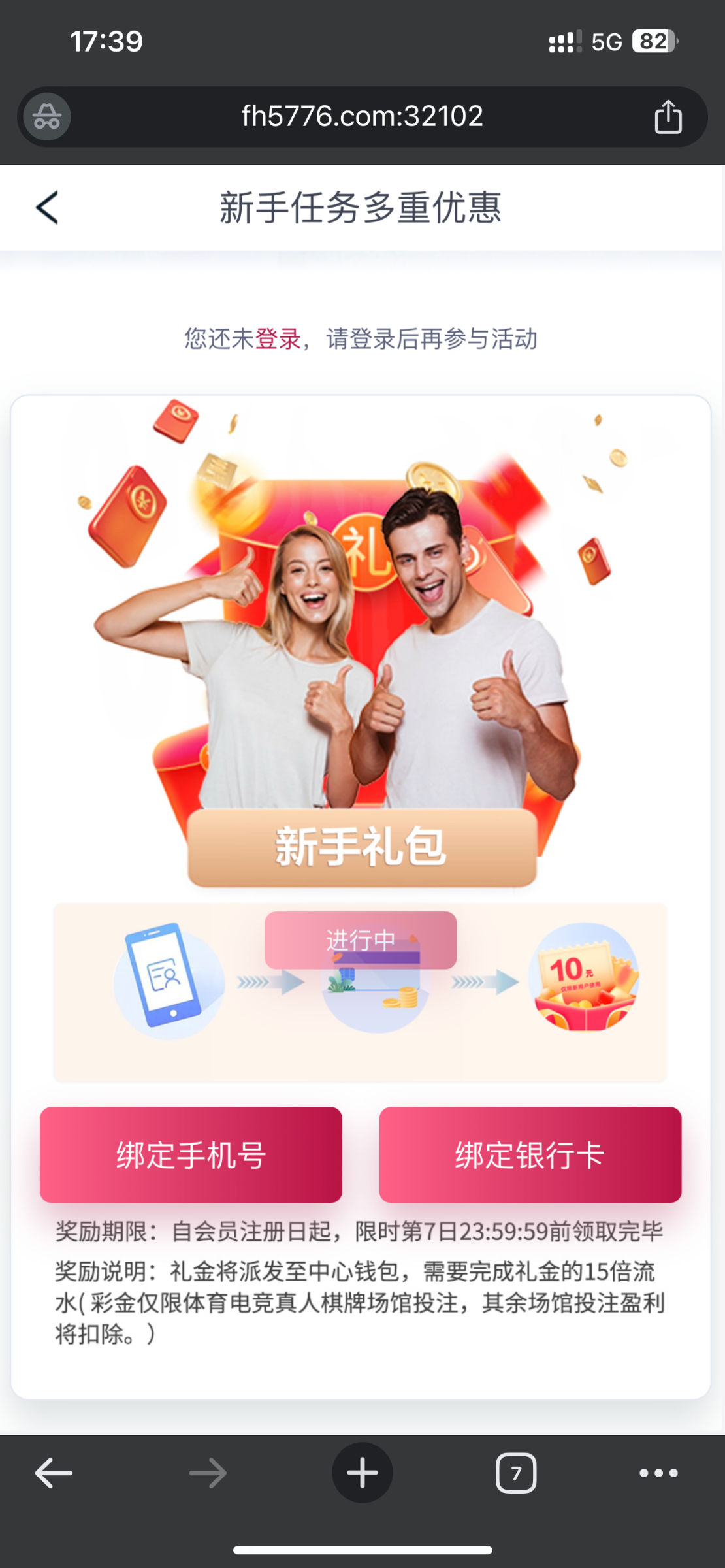 注册绑卡绑卡优惠里自助领取10彩金,15倍流水提现