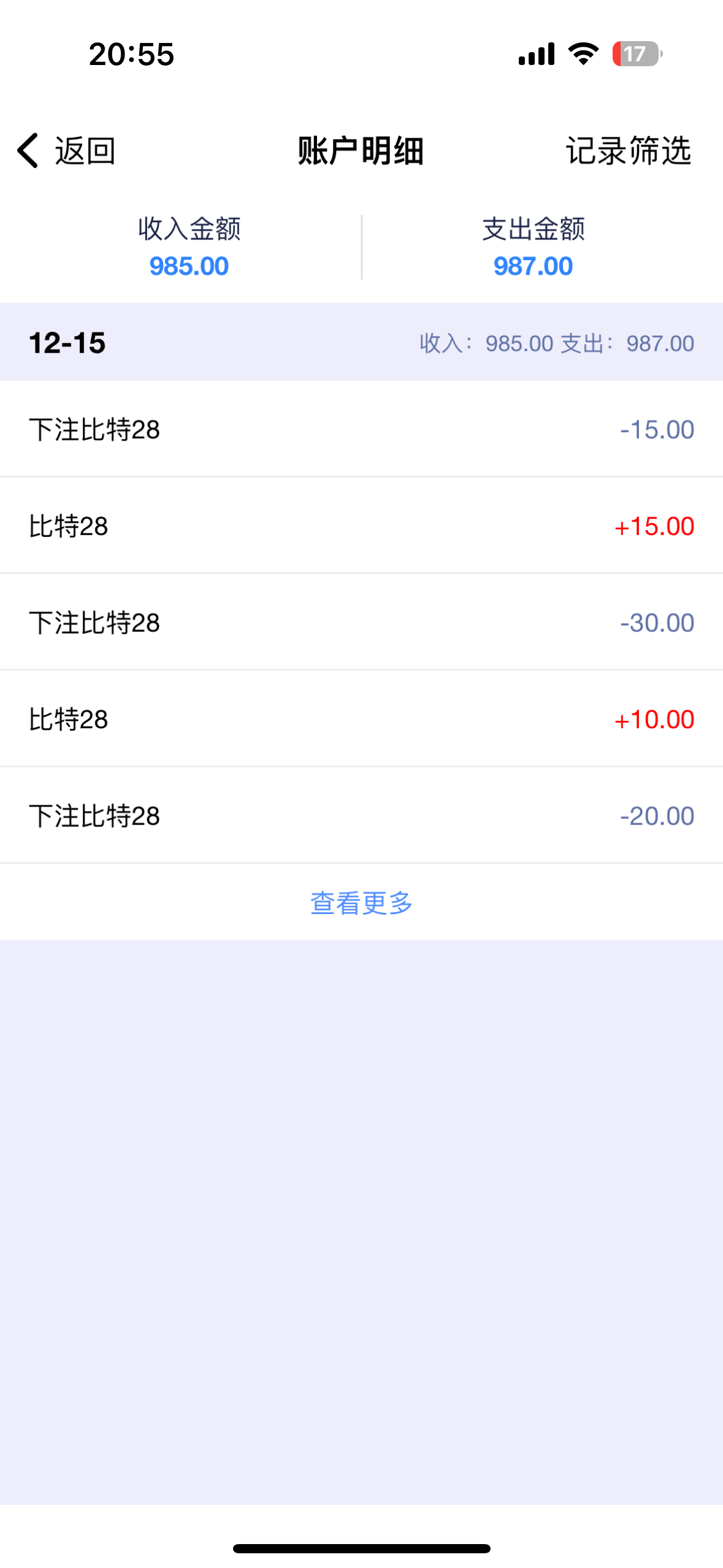 我上周星期五洗完澡出去散步逛逛,回到家手痒脑子热,上头一小时输4000,一周内输5500,支付宝7天定期到期刚取的,一下就没了,好在还有1000现金,手机上放太多钱是真不好,五六 次都这样,次次五六千,所以有钱就取现金放着,留几百放手机里就好。能大幅度控制充值,以防上头。