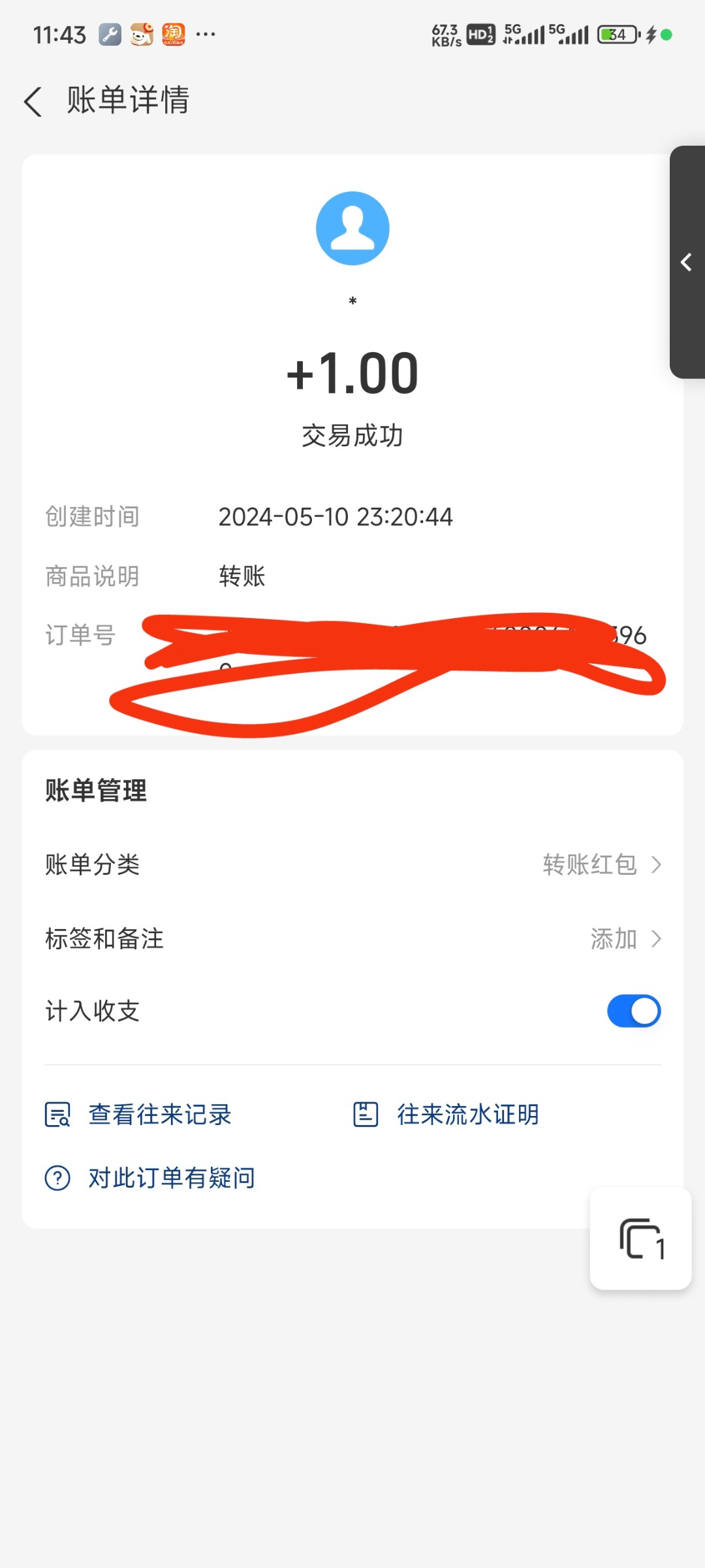 有人莫名其妙给我转了一块钱支付宝余额