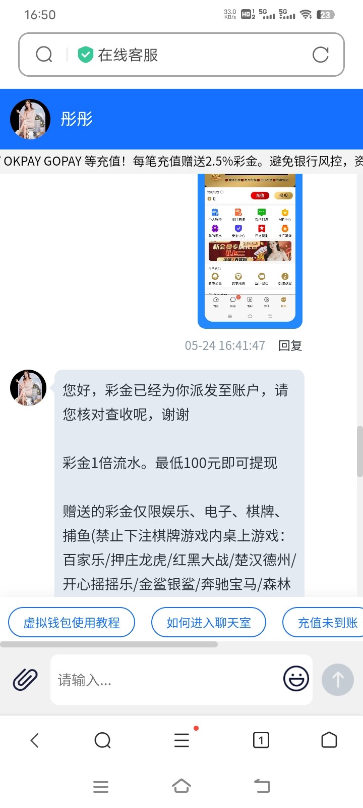 一个连100块钱都出不了的黑平台,特邀短信送了6彩金打110,一直处理提现中,过一小时还没到账我就知道不可能了,找客服说可以到账,现在登录上去一看账号冻结说什么多账号,根本不存在的