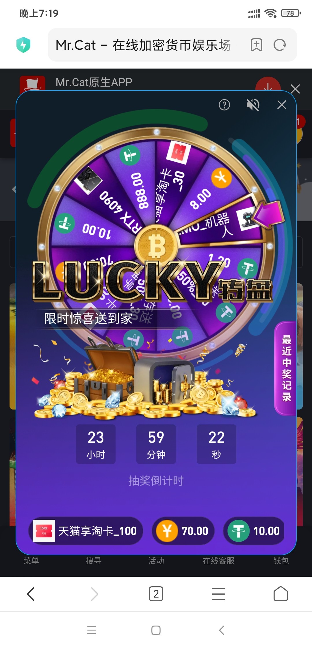 猫先生每日免费转盘8