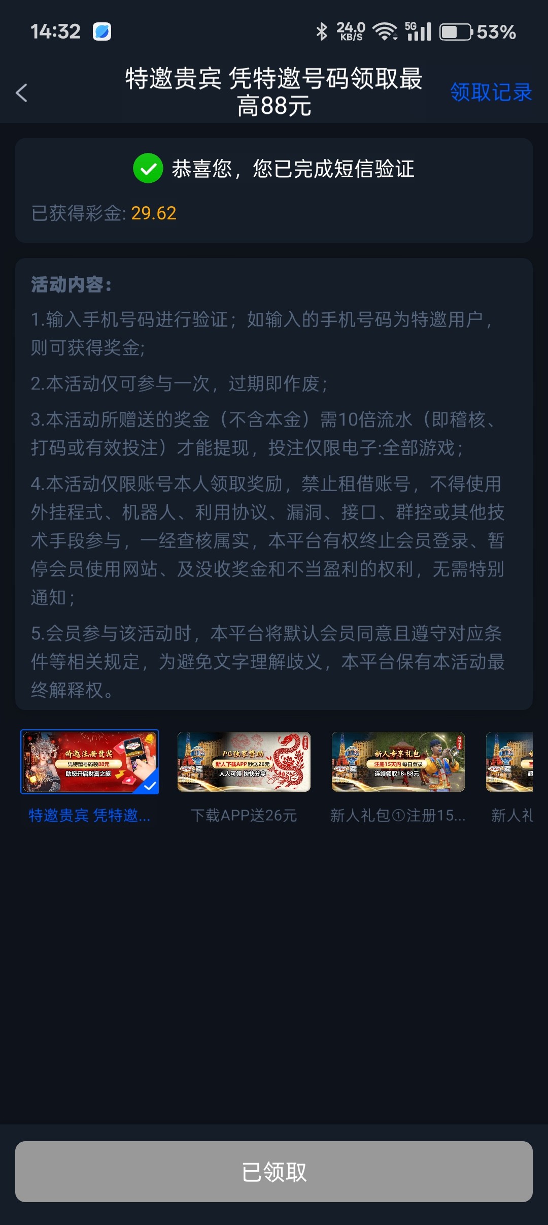 没打电话之前注册的,不送了