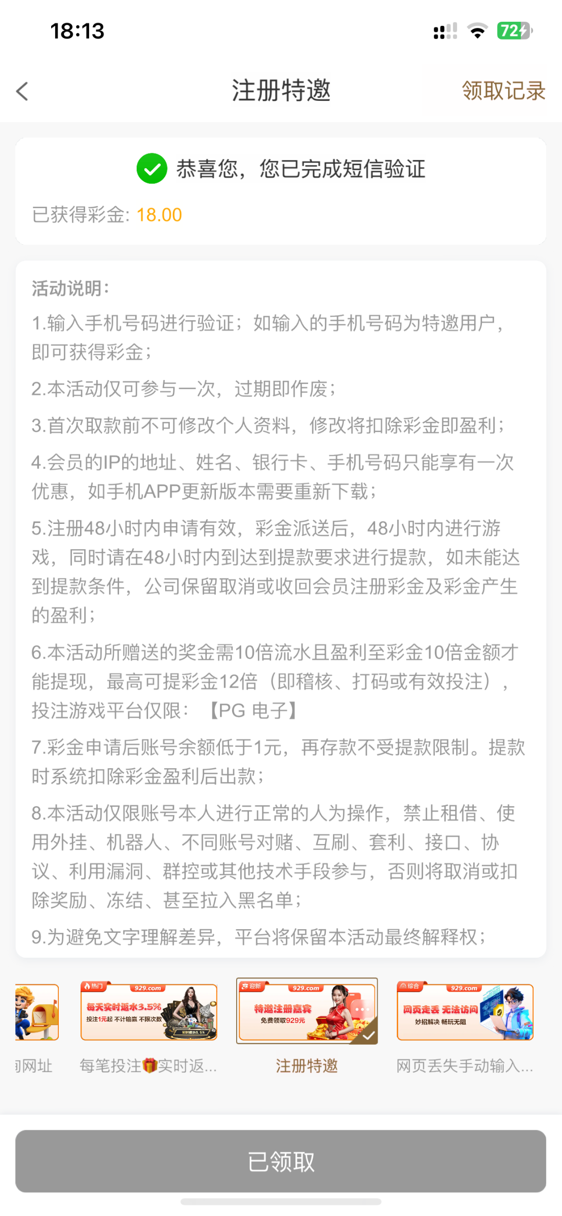 新普京短信特邀验证送18