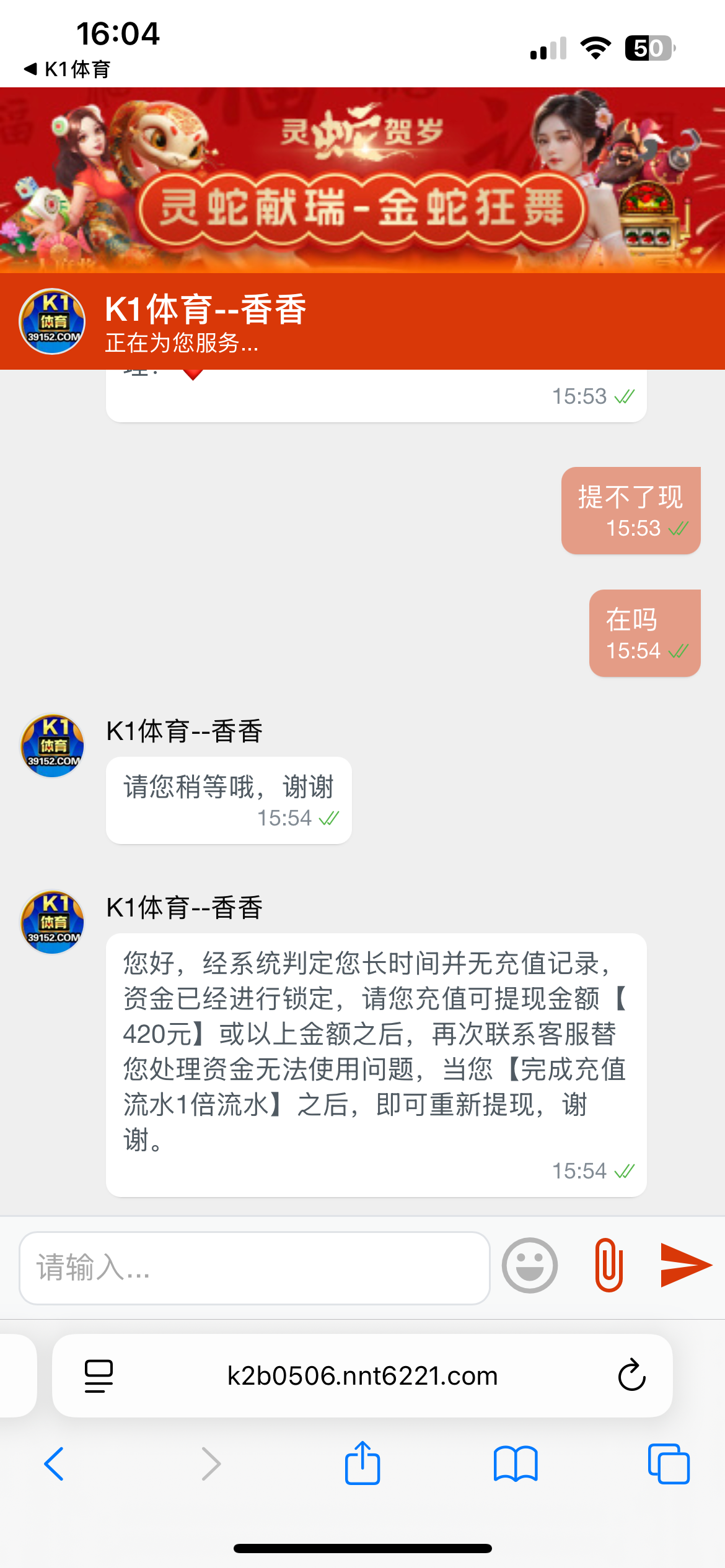 50彩金干到400不给提没钱充值了