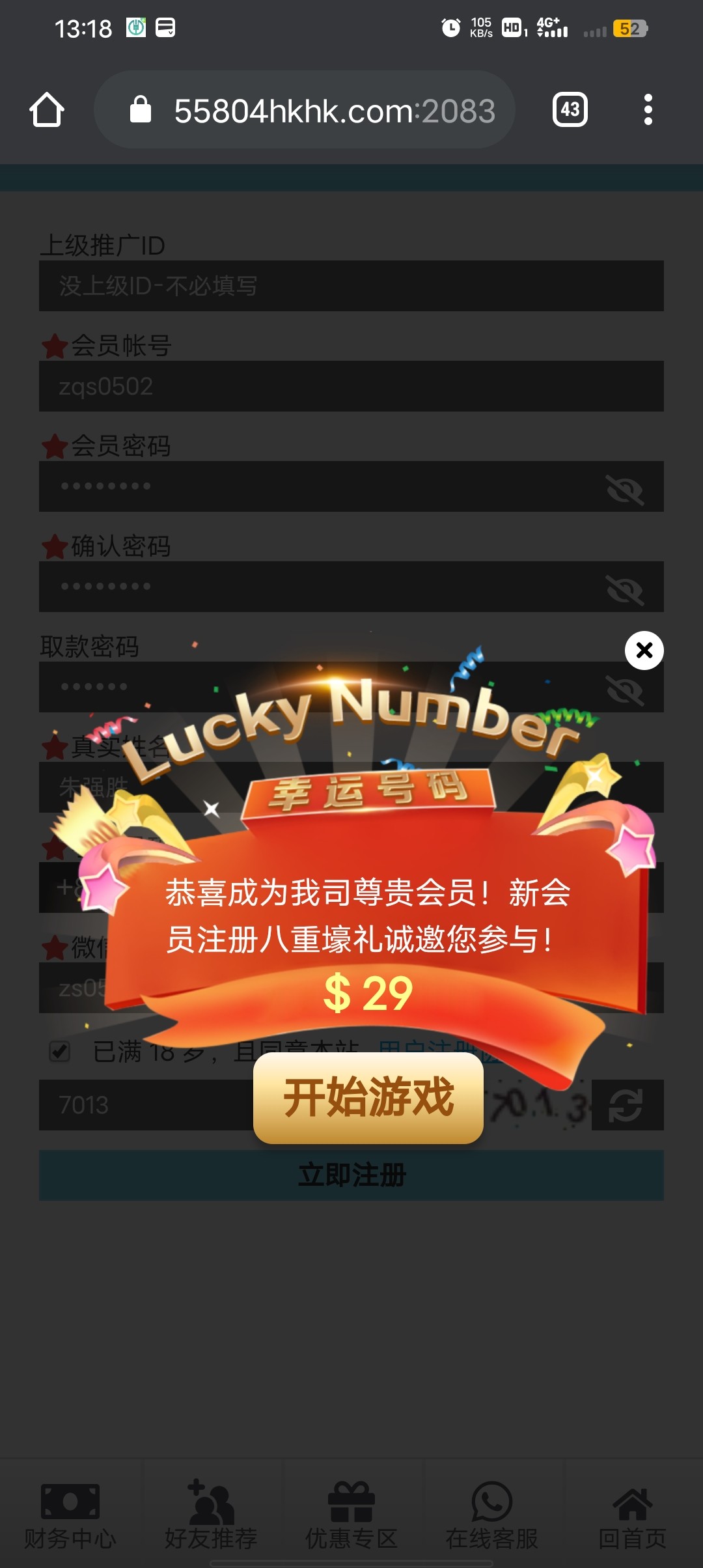 特邀碰瓷刚注册秒送了28