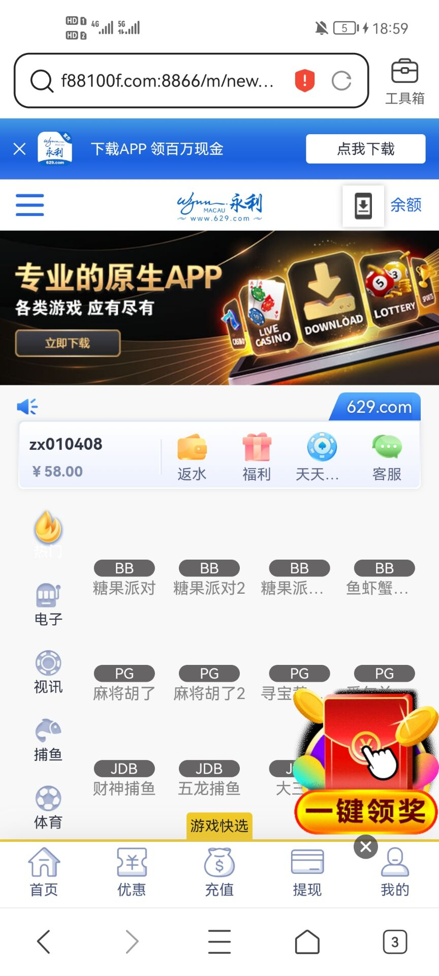 注册联系点击那个领取58彩金,看详细发短信申请。105可提,没到了的,p图可碰瓷