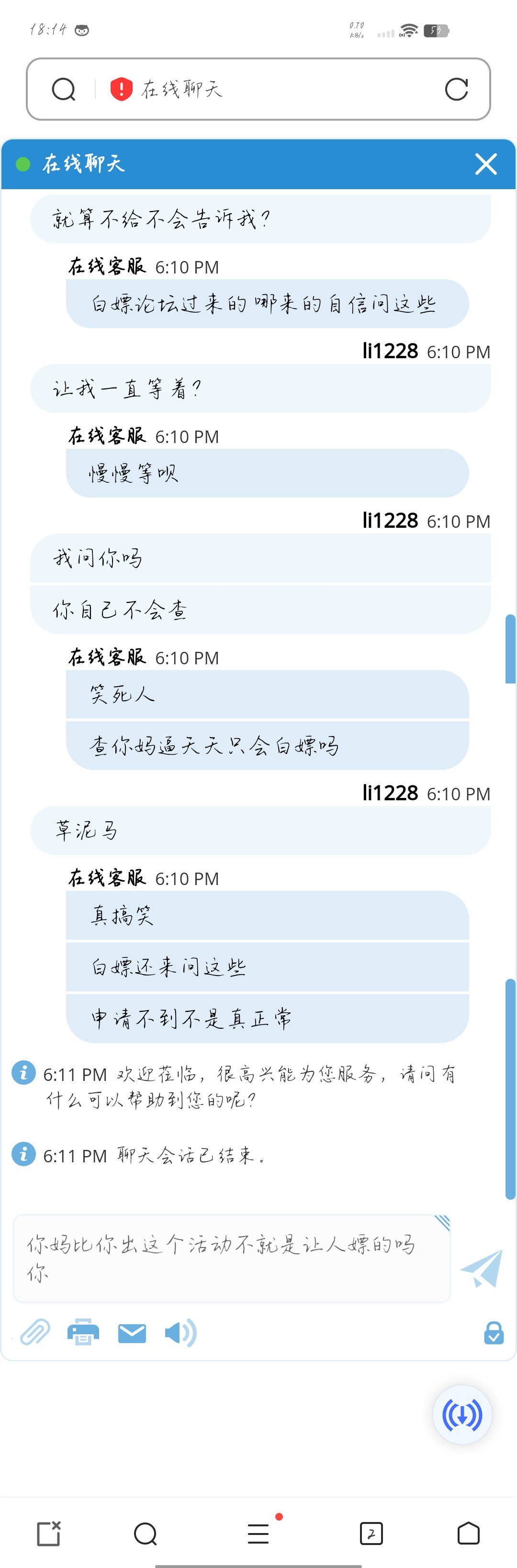 操你妈的野种,客服根本就不回我信息,你个垃圾